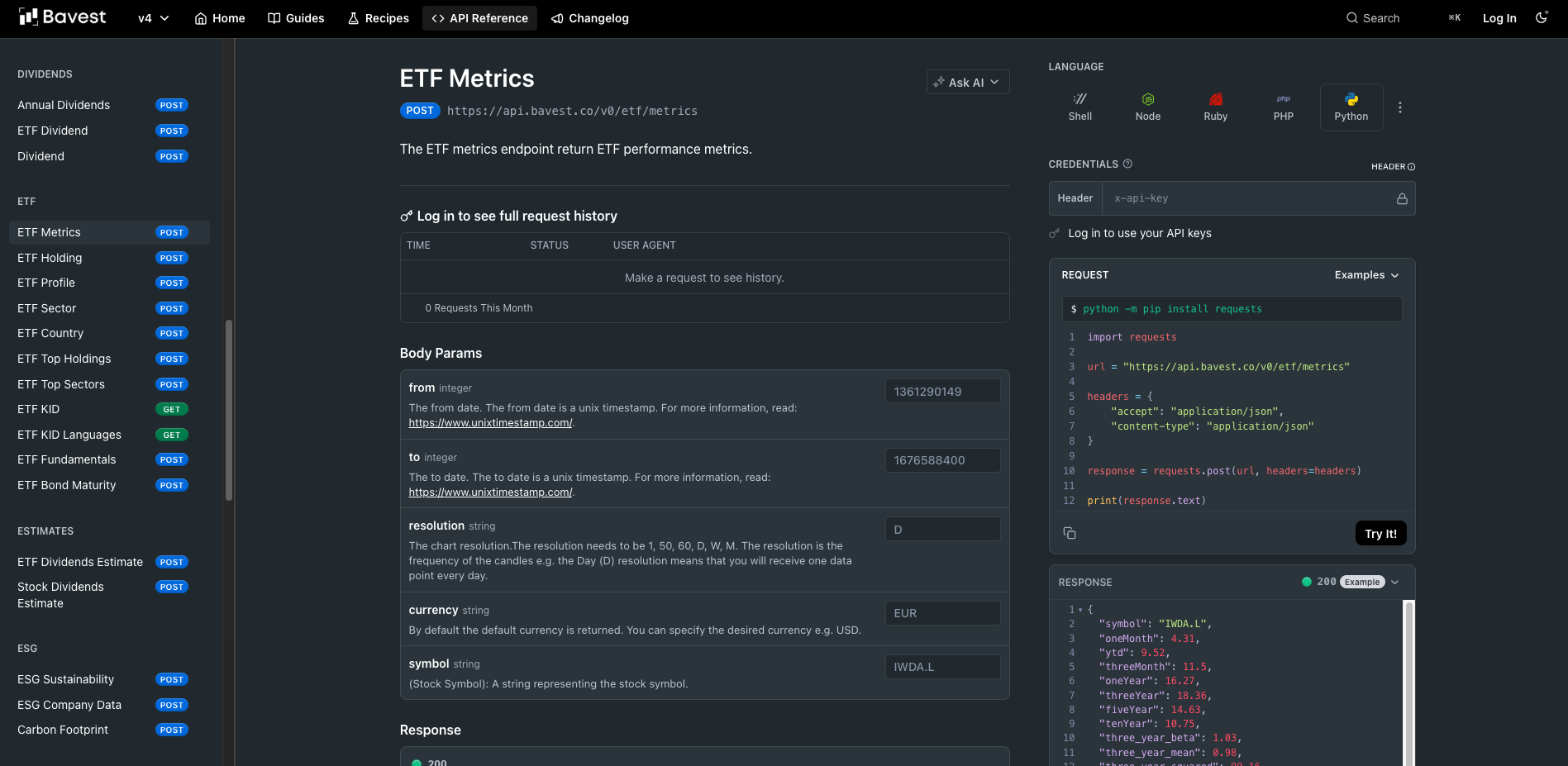 Mit den neuen ETP Risk Insights Endpoints erweitert Bavest die API um genau diese Funktionen. Ab sofort decken wir über 10.000 ETFs und ETPs aus den USA, UK und EU ab und liefern erweiterte Metriken, die weit über Kursdaten hinausgehen. Diese Daten in dieser Breite und Tiefe gibt es nur bei Bavest – wir sind die einzige API, die eine so umfassende Abdeckung mit Risiko-, Kosten- und Compliance-Metriken bietet.